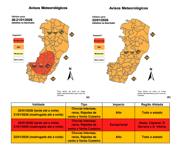 A previsão é que as chuvas comecem a perder força a partir da noite de quinta-feira (22) e da manhã de sexta-feira (23). Até lá, a Defesa Civil orienta que a população fique atenta aos alertas oficiais e evite áreas de risco.
