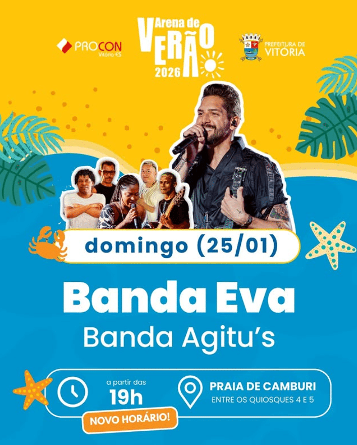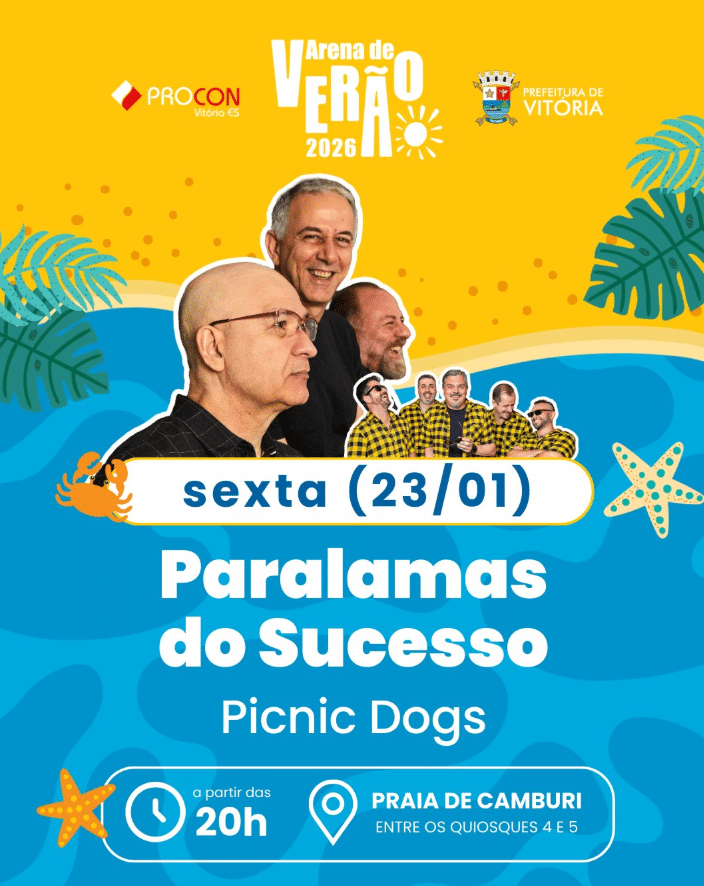 A Arena de Verão 2026 entra em sua reta final mantendo o ritmo intenso que transformou a orla de Camburi no principal ponto de encontro do verão capixaba. Entre os quiosques 04 e 05, o espaço receberá, em mais um final de semana, de sexta-feira (23) a domingo (25), uma programação que passeia pelo pop rock, pelos grandes clássicos nacionais, axé e pela música popular brasileira, reunindo artistas locais a nomes consagrados do cenário nacional.