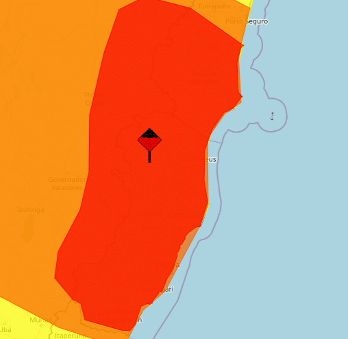 Inmet alerta para chuva de até 100 mm/dia. Há grande risco de grandes alagamentos e transbordamentos de rios, grandes deslizamentos de encostas, em cidades com tais áreas de risco.