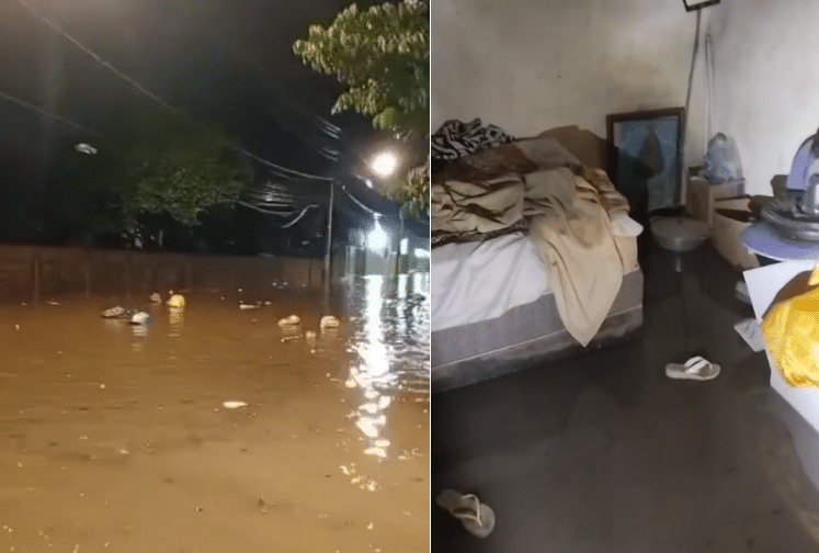Ruas alagadas em Linhares e casa inundada em Sooretama – Fotos: Redes Sociais