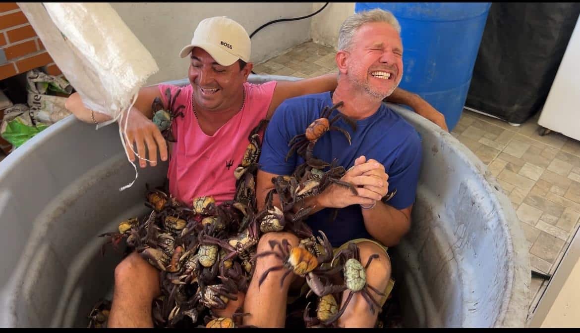 Durante a reportagem, o repórter Jean Walcher do ‘Alô, ES’ foi desafiado a entrar no tanque enquanto dezenas de caranguejos são jogados lá dentro. Além de conhecer também a história e inovação na venda do Vandinho, veja como foi a reação do Jean com caranguejos subindo por todo o corpo!